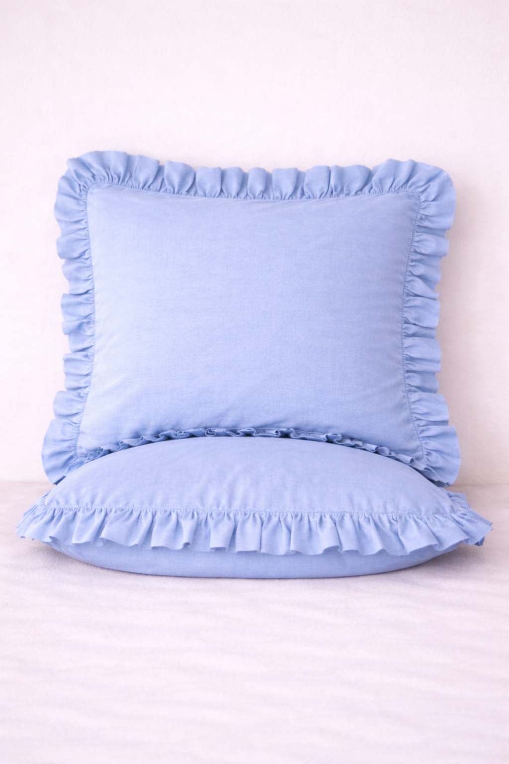 %100 PAMUK FIRFIRLI MAVİ YASTIK KILIFI (1 ADET)