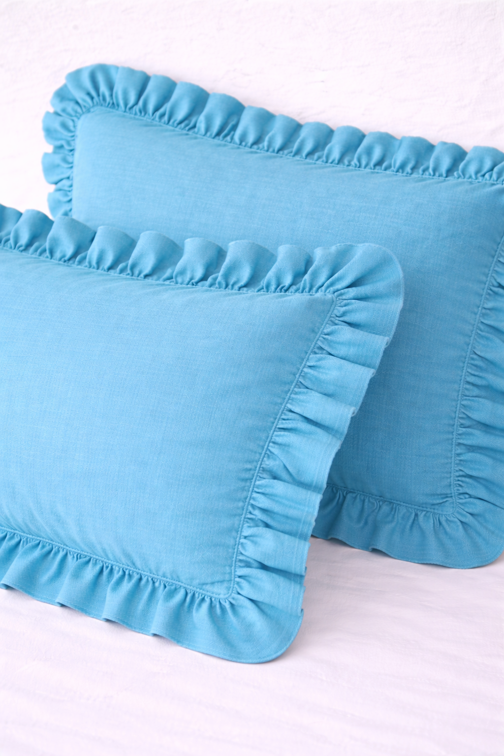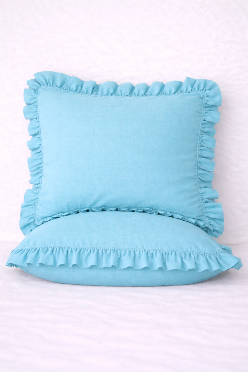 %100 PAMUK FIRFIRLI TURKUAZ YASTIK KILIFI (1 ADET)