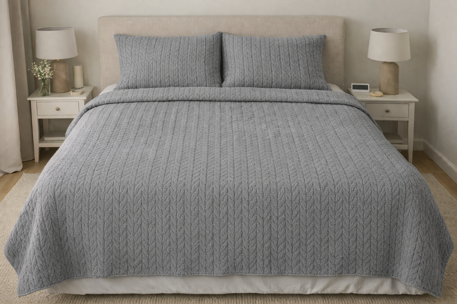 Örgülü Pike, yumuşak dokusu ve nefes alabilen yapısı sayesinde dört mevsim konfor sunar. Şık örgü deseniyle yatak odasına zarif bir görünüm kazandırır. Hafif yapısı sayesinde serimi kolaydır, günlük kullanım için idealdir. %100 pamuklu yapısı cilt dostudur ve terletme yapmaz.